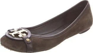Tory Burch Suede Flats Brown Round-Toes with Leather Trim Embellishment Designer Fit: This designer typically runs true to size. Read more