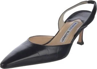 Manolo Blahnik Leather Slingback Pumps Blue Semi-Pointed Toes Includes Box Fit: This style typically runs narrow and a half size small. Unfortunately, due to restrictions, this item may not be eligibl Read more