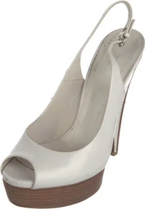Gucci Leather Slingback Pumps White Peep-Toes Platform Buckle Closure at Ankles Unfortunately, due to restrictions, this item may not be eligible for shipping in all areas. Read more
