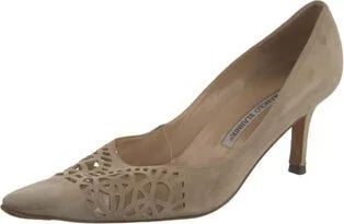 Manolo Blahnik Suede Pumps Neutrals Semi-Pointed Toes with Lasercut Accents Fit: This style typically runs narrow and a half size small.