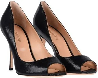leather, no appliqués, solid color, varnished effect, open toe, spike heel, leather lining, leather sole, contains non-textile parts of animal origin , Color: Black Read more