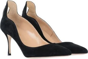 leather, suede effect, solid color, narrow toeline, spike heel, covered heel, leather lining, leather sole, metal applications, contains non-textile parts of animal origin , Color: Black