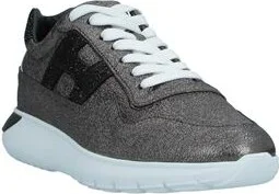 low-top sneakers, leather, metallic, solid color with appliqués, brand logo, leather lining, lace-up, round toe, rubber cleated sole, contains non-textile parts of animal origin , Color: Grey Read more