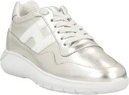 leather, crocodile print, laminated effect, brand logo, two-tone, leather backing, laces, round toeline, flat, rubber cleated sole, contains non-textile parts of animal origin, low-tops & trainers , Color: Silver